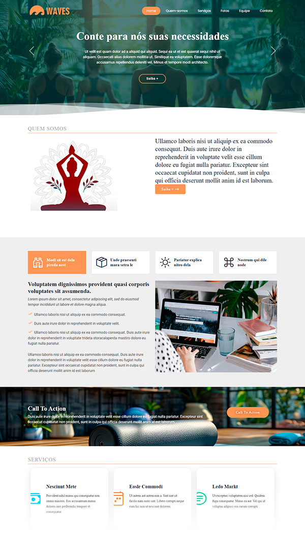 Vem com funcionalidades embutidas, como formulários de contato, galerias de imagens, botões interativos e muito mais.
